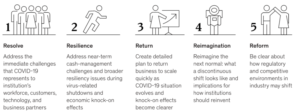 I believe that any business in any sector, will get a hit to its business and should be working on a holistic response based across five stages, leading from the crisis of today to the next normal that will emerge after the battle against coronavirus has been won: Resolve, Resilience, Return, Reimagination, and Reform.