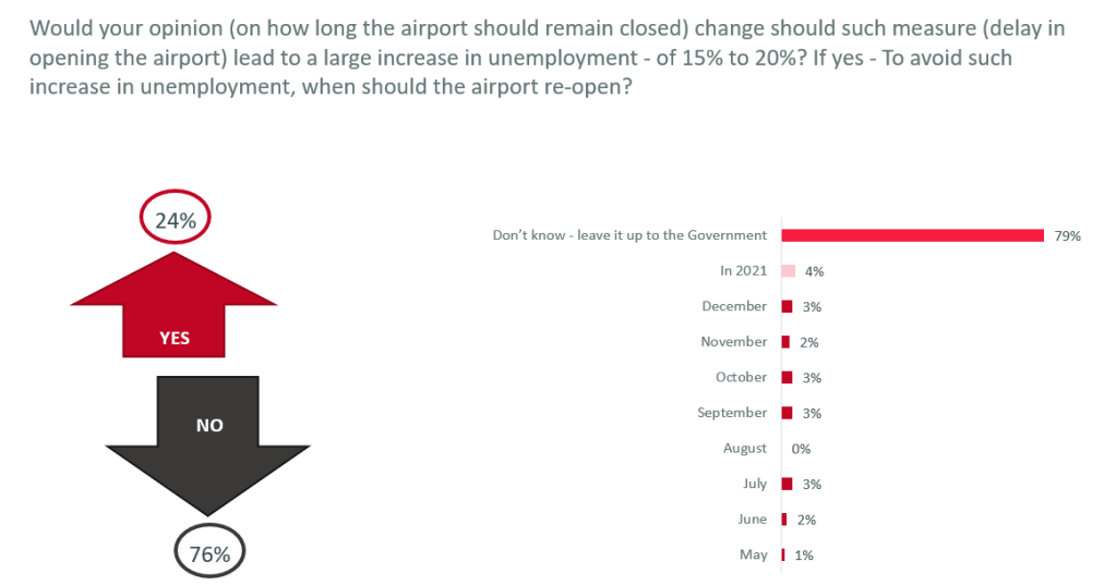 •Even among those that answered in the positive (24%), those that believe the airport should re-open any time soon are minimal.
