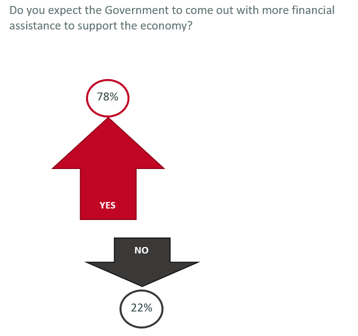 •Three-fourths of the population expect the Government to come up with more financial assistance to support the economy.