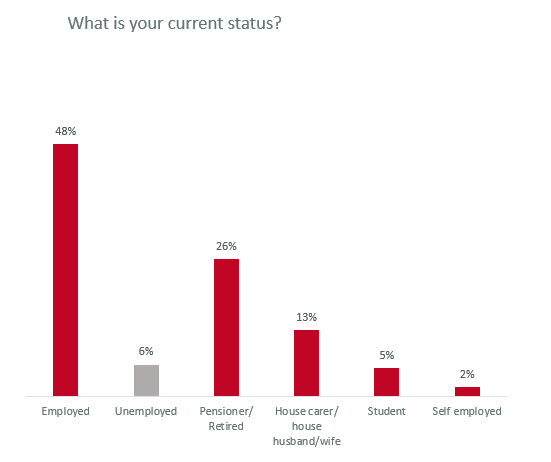 A total of 6% of the population indicated being unemployed. This is in line with the study conducted 2 weeks ago.