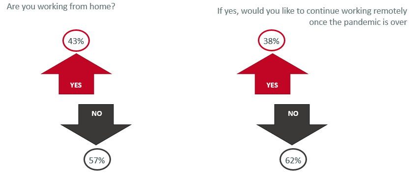 •This figure represents a decline over the previous study. Then 55% had indicated to be working from home.