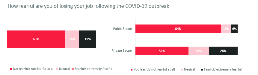•Those in the public sector that are fearful has remained consistent (5% 2 weeks ago).