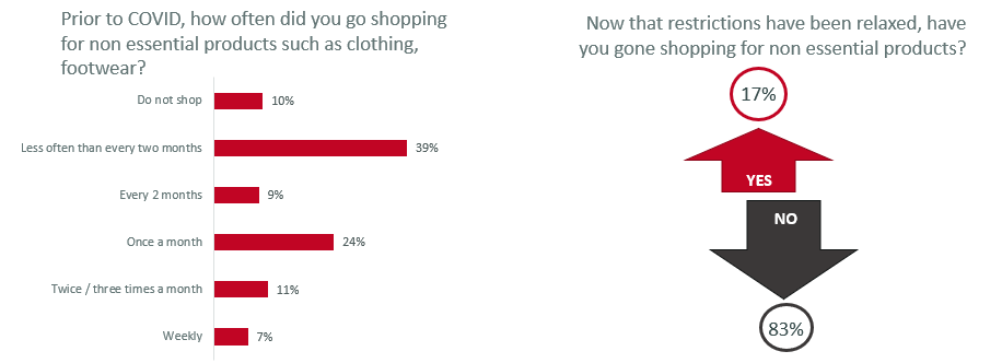 •Following the relaxation of restrictions, 17% of locals had gone shopping.