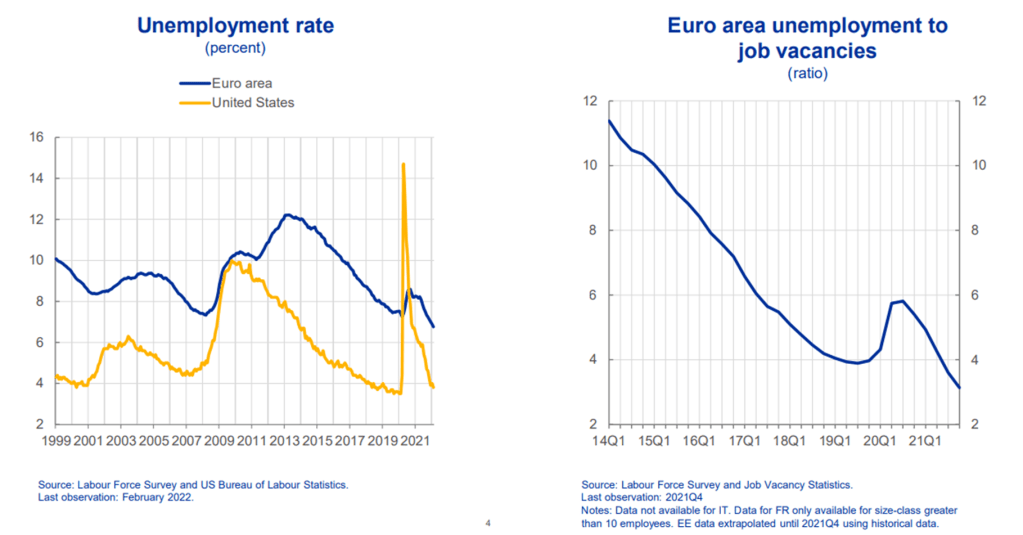 This is not a Malta bound phenomenon. The below graphs clearly indicate that the labour market is tightening also across the whole of Europe. In 2014 there were on average 11 unemployed persons across Europe per job vacancy, today it is down to 3 unemployed persons per vacancy.