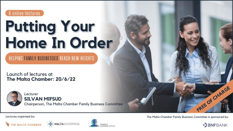 If you are still reading until this point, this is all very relevant for all businesses, including family businesses. Family businesses should be better structured and prepared for what will likely hit them. To this end, as Chairperson of the Family Business Committee at the Malta Chamber of Commerce, in collaboration with the Family Business Office and Malta Enterprise, I am very proud to announce that as from the 20th June a number of FREE training sessions will be held that are specifically set for Family Businesses. These training sessions will help family business owners and family business leaders structure, strategise, grow and manage their business better.