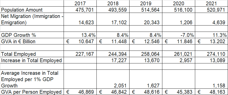 As can be seen above population growth has in the past year been fueled by net migration. This net migration was the basis of the economic growth we had in recent years. On Average between 2017 – 2019, we had a net migration increase of 17,000 persons per annum, which almost all went towards the increase in the number of persons employed.