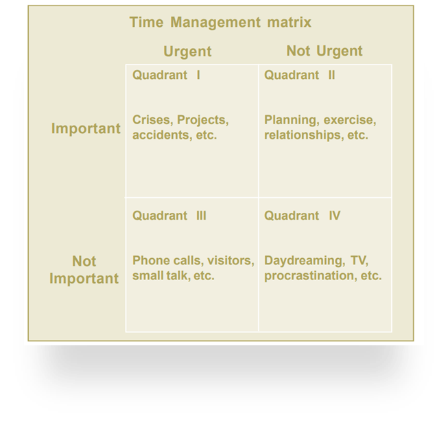 Focusing on activities in Quadrant II will mean avoiding all unimportant activities in Quadrant III and IV