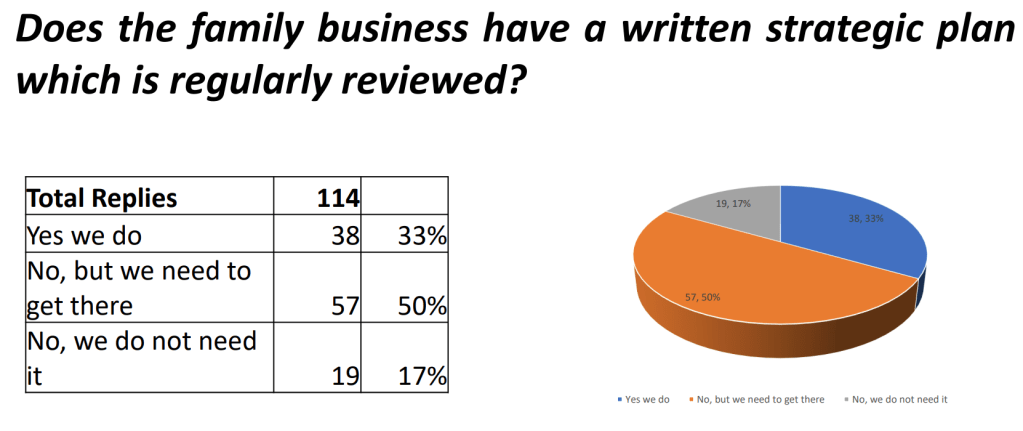 As the 1st Blog Article for 2024, I would like to focus on strategic planning. You may recall that almost a year ago, we as EMCS, together with the Malta Chamber and the Family Business Office had presented a survey, which with regards strategic planning had shown the below situation:-